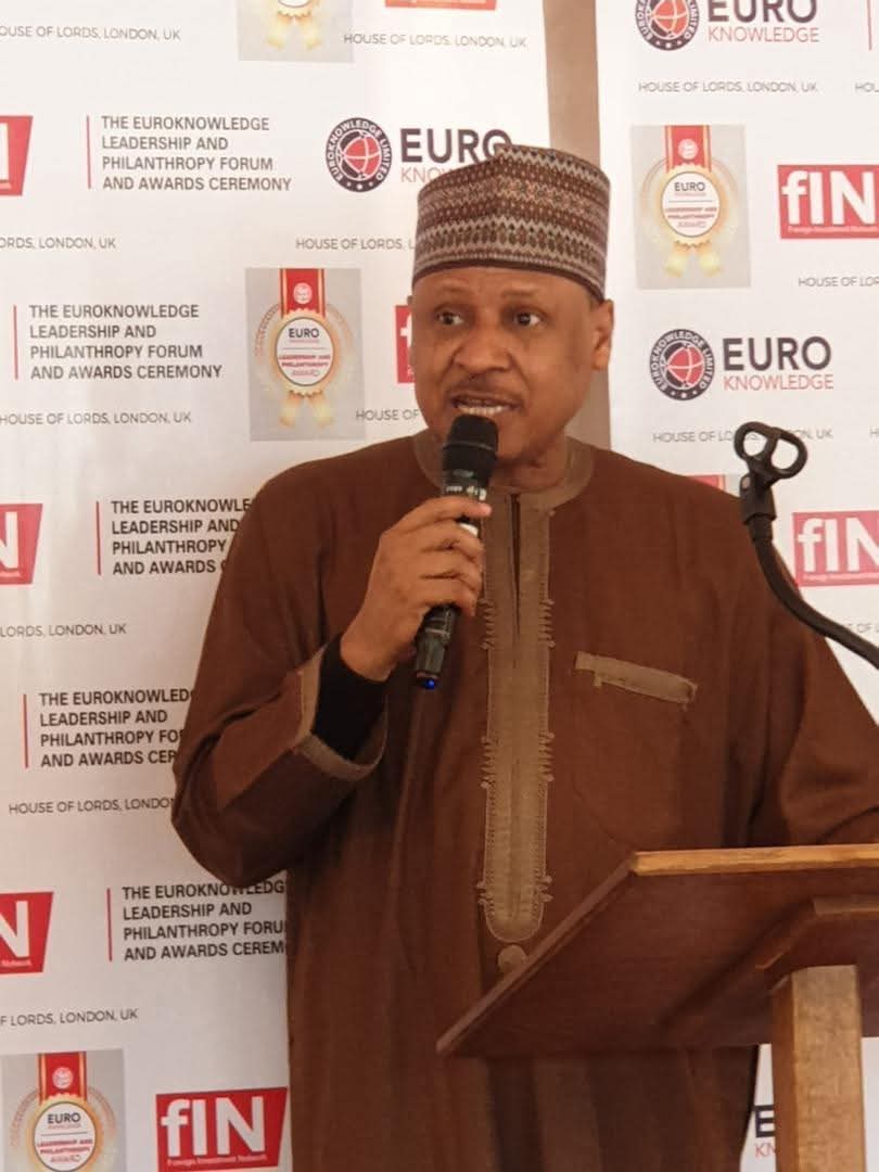 Photo: Minister of Information and National Orientation, Mohammed Idris, delivering an address at the Renewed Hope Global Dialogue in London, United Kingdom, on Saturday