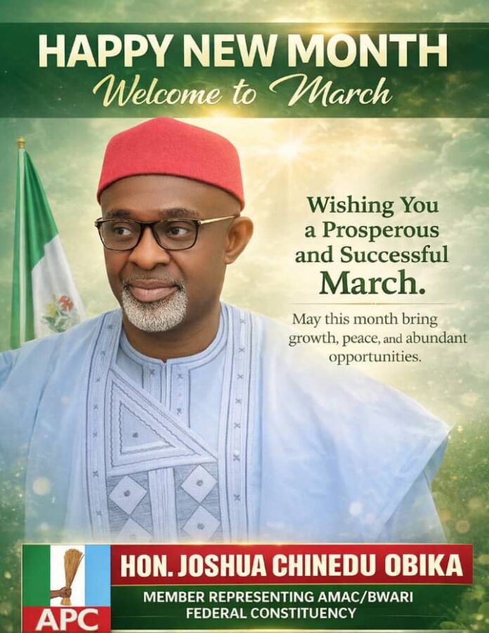 As the calendar flips to a new month, Hon. Joshua Chinedu Obika, Member Representing AMAC/BWARI Federal Constituency, extends his warmest greetings to the residents of his constituency. In a statement on Sunday, Hon. Obika expresses his heartfelt wishes for a March filled with peace, stability, and progress.